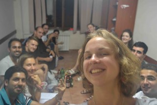 U večeře mi místy docházely nervy. Když jsem ale Romanovi, co seděl vedle mě, řekla, že se mi to nelíbí, dělal všechno proto, aby se anglicky mluvilo a blbé řeči jednoho kluka, co opravdu anglicky neuměl, mi ochotně překládal. Ukazuju jim na mobilu tradiční české kroje a verbuňk a tak. Verbuňk se prý podobá na tance v Gruzii.