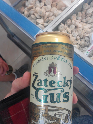 S Tomem se tlemíme novému objevu – českému tradičnímu pivu, které zde prodávají, a my o něm nikdy neslyšeli – Žatecký Gus. Samozřejmě je to jasná volba pro polední svačinku.